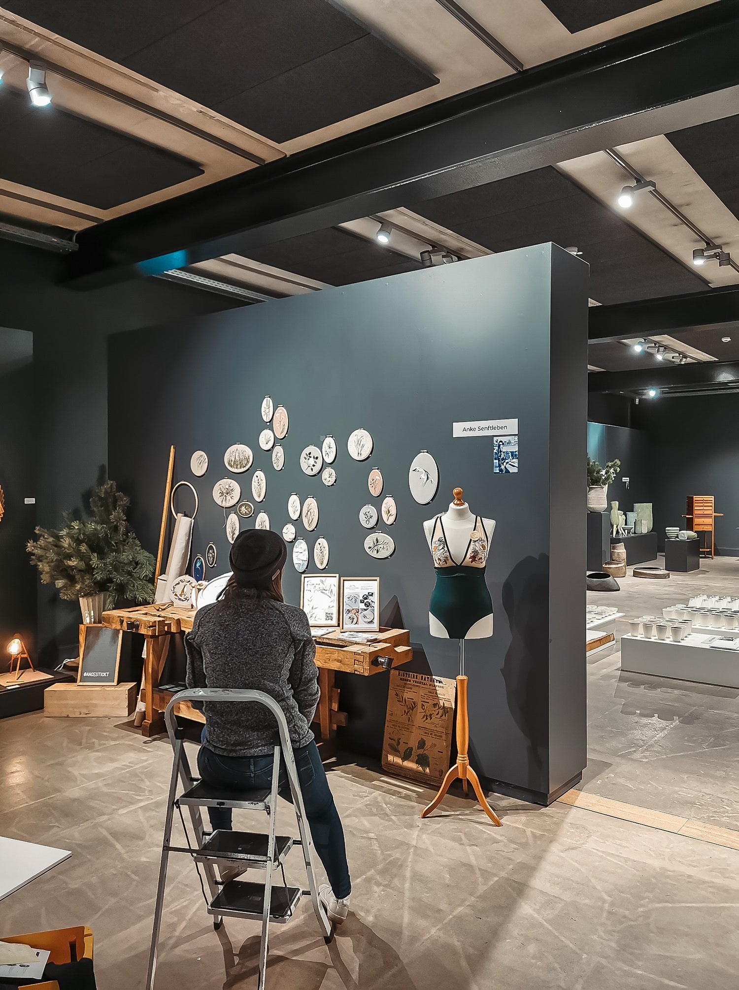 Zwischen Werfthallen, Yachtbau und Winterlicht habe ich meine Werke ausgestellt und dort auch den bestickten Badeanzug vorgestellt.