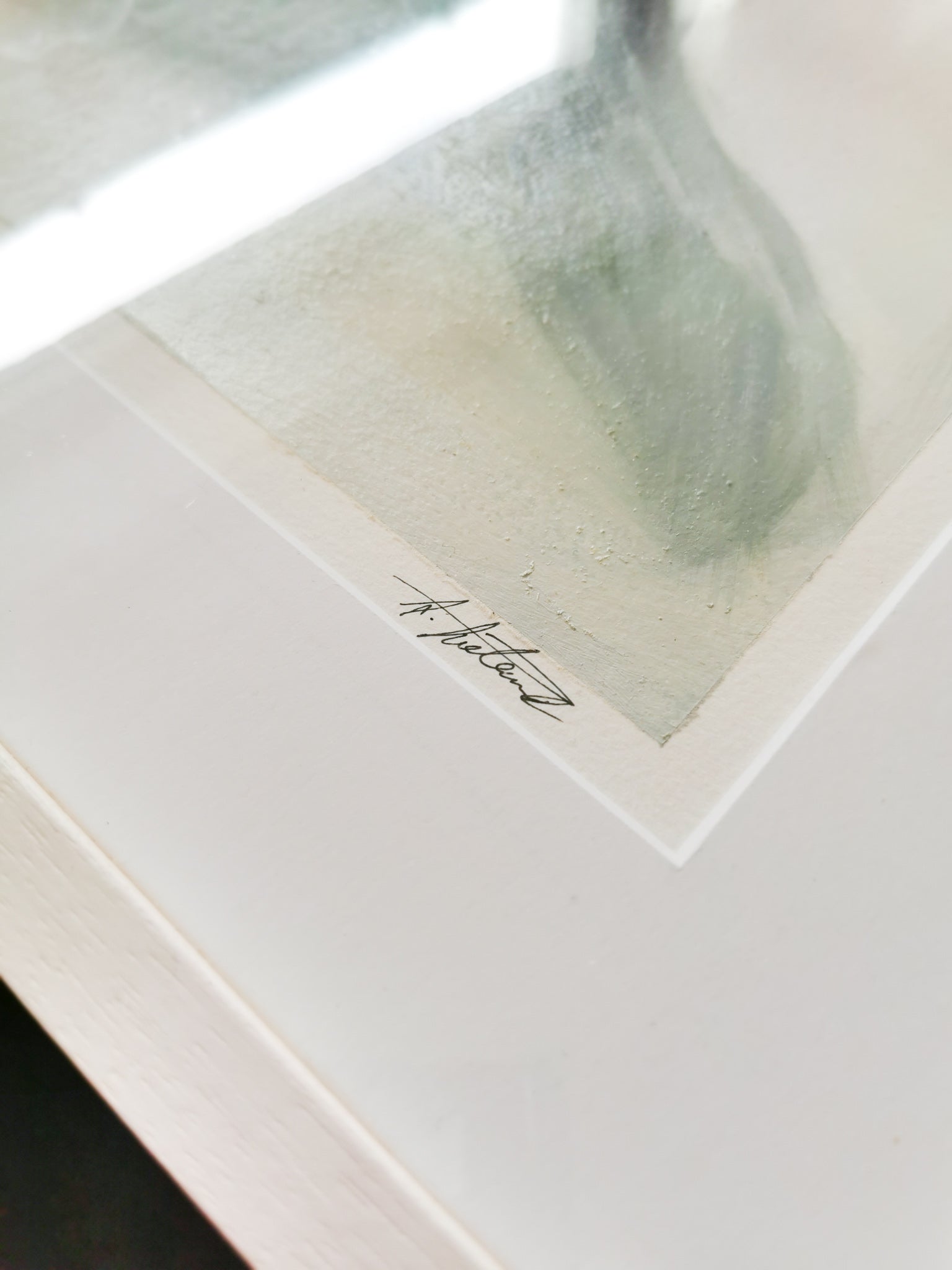 Nachträglich gerahmt in einem tiefen Abstands-/Schattenfugenrahmen. Auf Wunsch kann die Rahmung individuell besprochen werden.